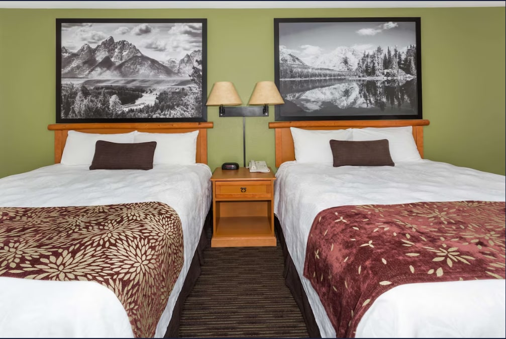 Cette chambre d'hôtel de style rustique offre un hébergement fantastique pour répondre à vos besoins dans un emplacement encore meilleur. Décoré avec des photos historiques de Jackson Hole et meublé avec Old Hickory et Knotty Pine, vous aurez l'impression de faire partie du Far West.