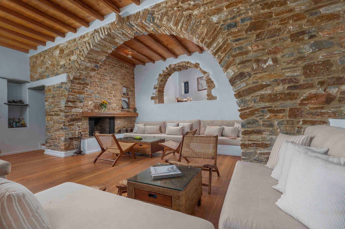 Entrez dans une maison traditionnelle des Cyclades révisée de manière unique, perchée au bord du village de Ktikados. Déposez vos sacs, ouvrez les doubles portes menant au patio et installez-vous pour une vue amphithéâtrale sur la montagne et la mer ! La propriété se compose d'une série de terrasses idéales pour dîner en plein air, se prélasser et profiter d'une vue imprenable sur le coucher de soleil. Pendant la journée, vous pouvez vous attendre à des survols par les corbeaux locaux uniques à l'île et après le coucher du soleil, des visites au clair de lune des moutons de la vallée.