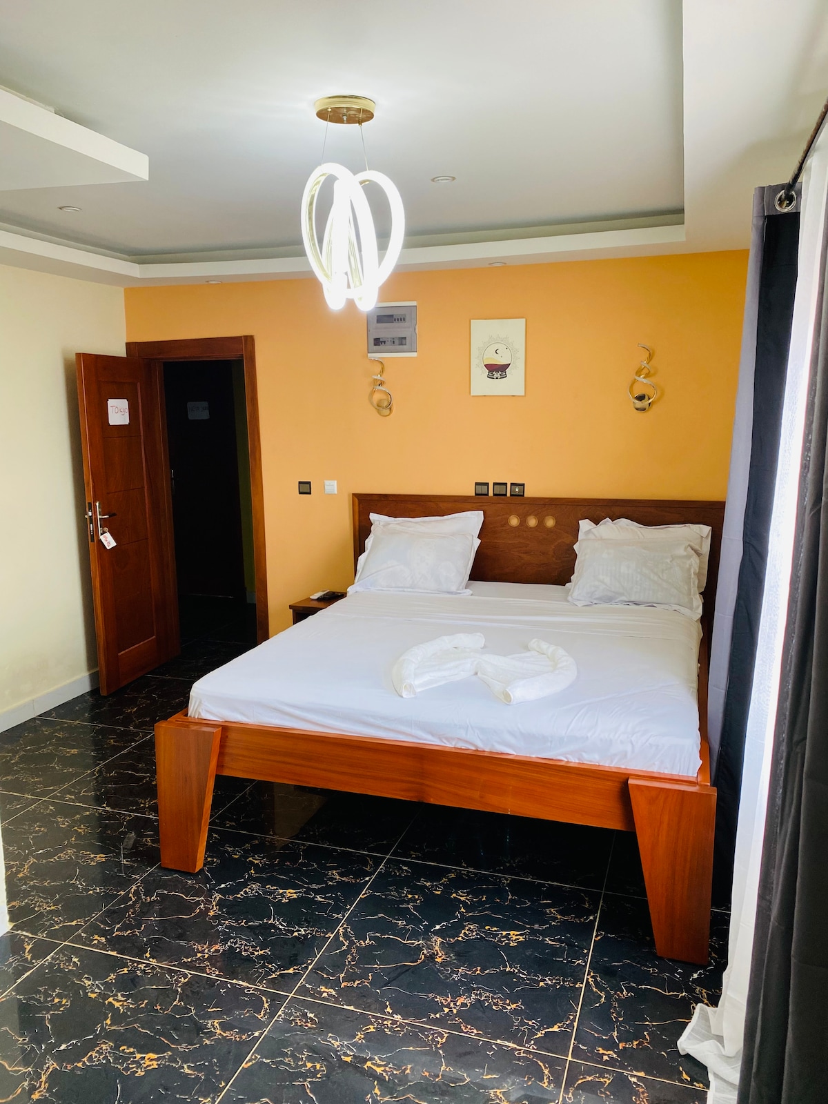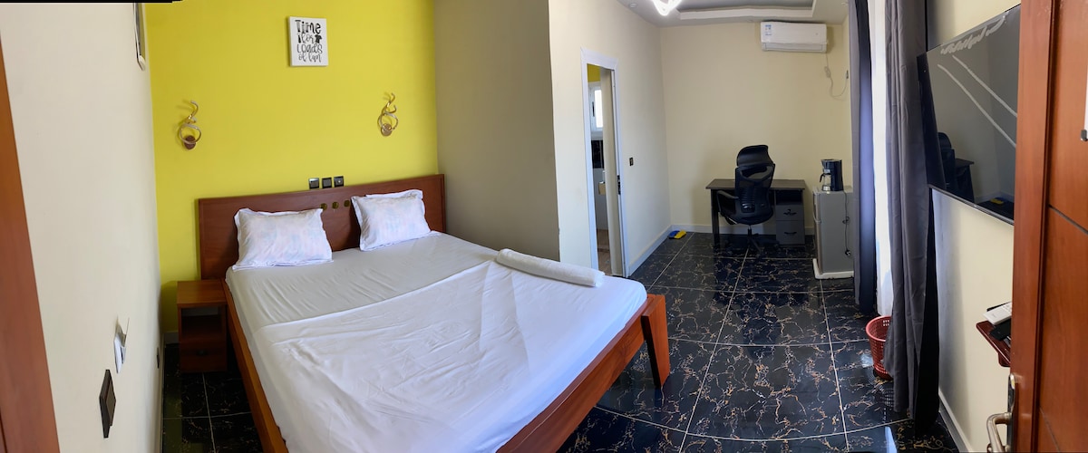 Chambres élégantes, propres et au calme pour votre séjour. WIFI Internet inclus avec fibre optique. eau de douche. Climatisation et salle de bain privée. Vous pouvez inclure un petit réfrigérateur et un four à micro-ondes sur demande des voyageurs. Service de ménage quotidien. Meubles modernes avec télévision intelligente 50". Des gardes de sécurité 24h/24 et 7j/7 en service + caméra de vidéosurveillance. Accès très facile et en toute sécurité. Chemin pavé depuis le centre-ville. Générateur d'énergie de secours automatique. Voitures : Highlander Hybrid 2015 toyota Hybrid et un toyota Camry 2010 avec chauffeur disponible