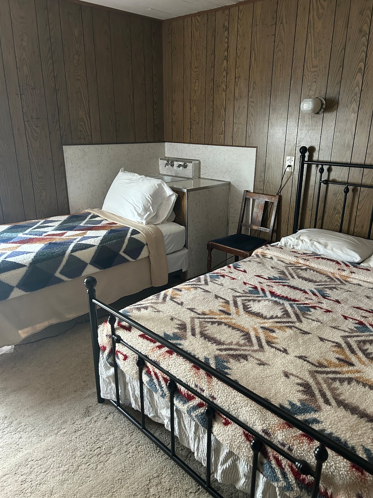 Spacieux non-fumeur, pas d'animaux, chambre de luxe avec deux lits queen size et une salle de bain complète. Chaque chambre a été entièrement rénovée, lits neufs avec matelas moelleux et confortables.