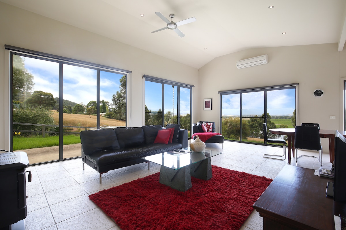 Ferme rurale avec des commodités modernes surplombant des vues majestueuses et incroyables en plein cœur des attractions de la vallée de Yarra. Construit en 1930 et entièrement restauré avec des extensions ajoutées en 2017. 3 GRANDES chambres (par exemple, week-end 3 personnes ~ 299 $ par nuit = environ 100 $ chacune + nettoyage). Partagé : salle de bain, salon avec cuisinette. Ouvert à la négociation - contactez-nous avec vos besoins. On a des border collies, des alpagas, des moutons et des poules. Consultez la section « Autres infos à noter » avant de réserver. Si vous réservez, vous acceptez.