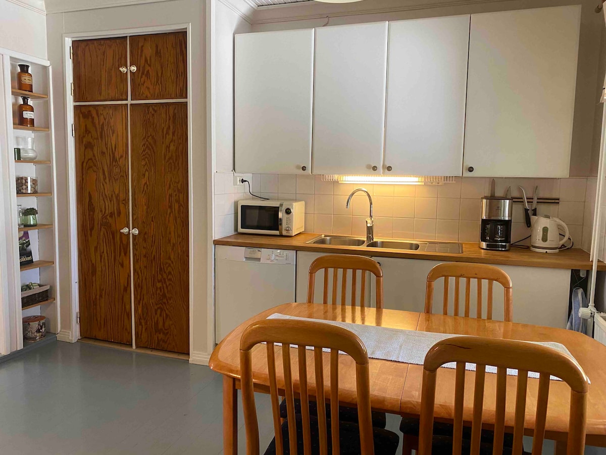 Profitez d'un hébergement élégant dans le centre d'Ylöjärvi ! Convient le mieux pour, par exemple, 2 adultes et 2 enfants (le canapé-lit mesure 120 cm) Les services du centre sont accessibles à pied. L'arrêt de bus se trouve à 200 m de l'appartement (liaison rapide avec Tampere). L'appartement de 36 m2 dispose d'une cuisine ouverte entièrement équipée, d'une salle de bain avec un sauna et d'une alcôve avec un lit de 14 cm de large. - Särkänniemi 11 km - Nokia Arena 14 km - Aéroport 19 km - Foire et centre sportif de Tampere à 22 km