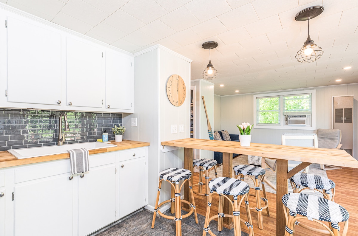 Cet appartement d'une chambre se trouve à un demi-mille à pied de Cape Neddick Beach, tout en étant niché dans l'intimité des bois. Lorsque la houle est là, vous pouvez entendre les vagues s'écraser sur la crique rocheuse voisine et le claquement de la bouée de l'océan. Également idéalement situé à moins de 3 miles de York Beach, Ogunquit, du terrain de golf de Cape Neddick et du Cliff House Resort. Cape Neddick a tout pour plaire : des falaises côtières, une plage de sable, une rivière pittoresque, des sentiers de randonnée et une cuisine raffinée.