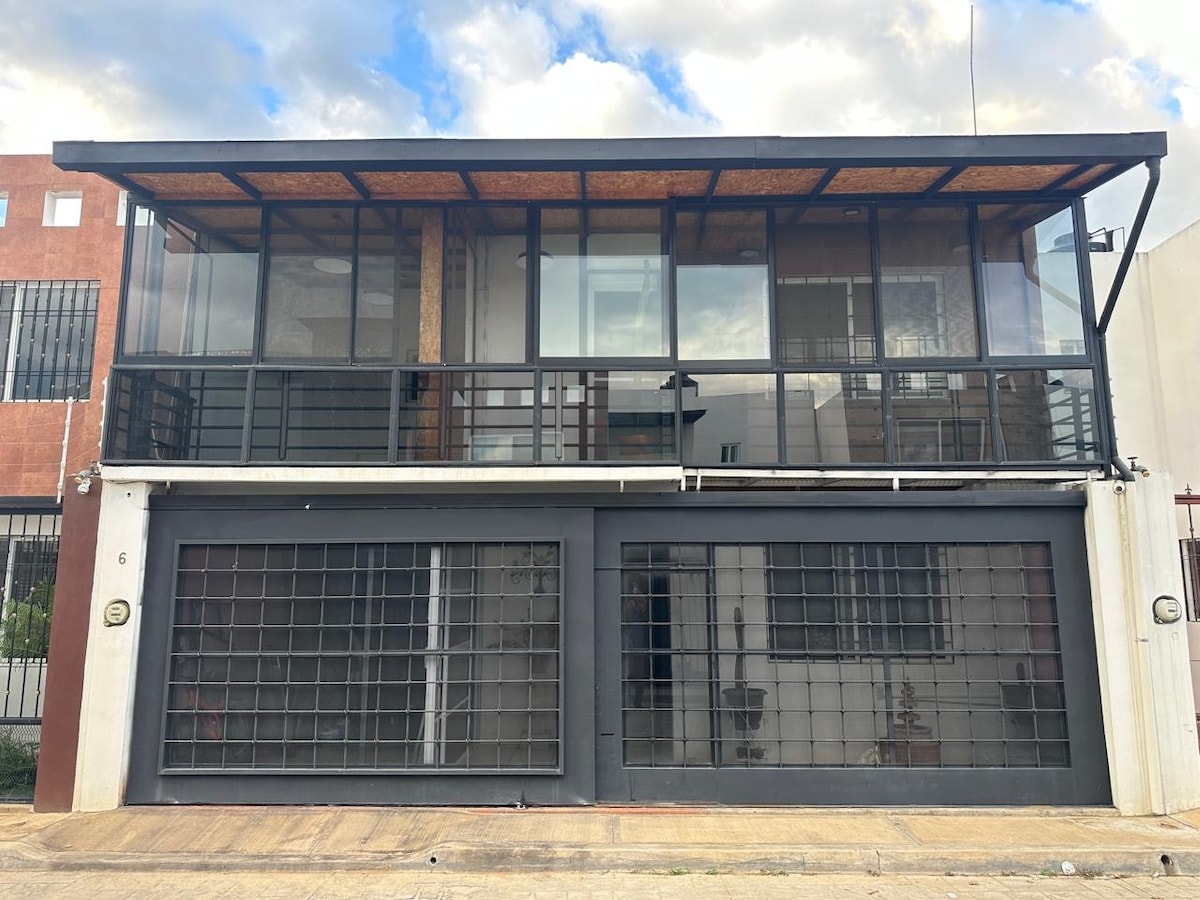 Profitez de ce loft privé au beau design qui inspire l'art, avec une cuisine équipée, une salle à manger, un salon confortable, une salle de bain spacieuse et élégante, avec des services tels que le Wi-Fi, l'eau chaude, une cour pour le stationnement et un petit jardin. Cet espace est situé dans la municipalité de San Agustín de las Juntas, une belle ville pleine de traditions et de coutumes, à 2 min en voiture et à environ 8 min à pied de l'aéroport international d'Oaxaca, et à 20 min en voiture de la ville d'Oaxaca.