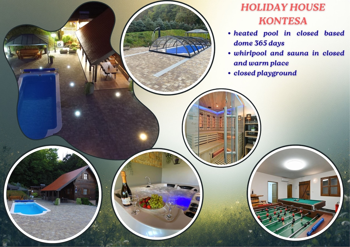 Si vous aimez les vacances dans la nature, cette maison vous convient parfaitement. En plus de la vue magique sur la forêt depuis la maison, vous pourrez vous promener sur les sentiers forestiers ou près du ruisseau. La maison est située dans le parc naturel Medvednica. À seulement 30 minutes de Zagreb. La maison est louée pour le plus de 6 personnes. Il dispose d'un jacuzzi intérieur et d'une piscine extérieure chauffée. Il y a une cuisinière couverte, une cuisine bien équipée pour préparer diverses spécialités. Détendez-vous en famille lors de cette escapade confortable.
