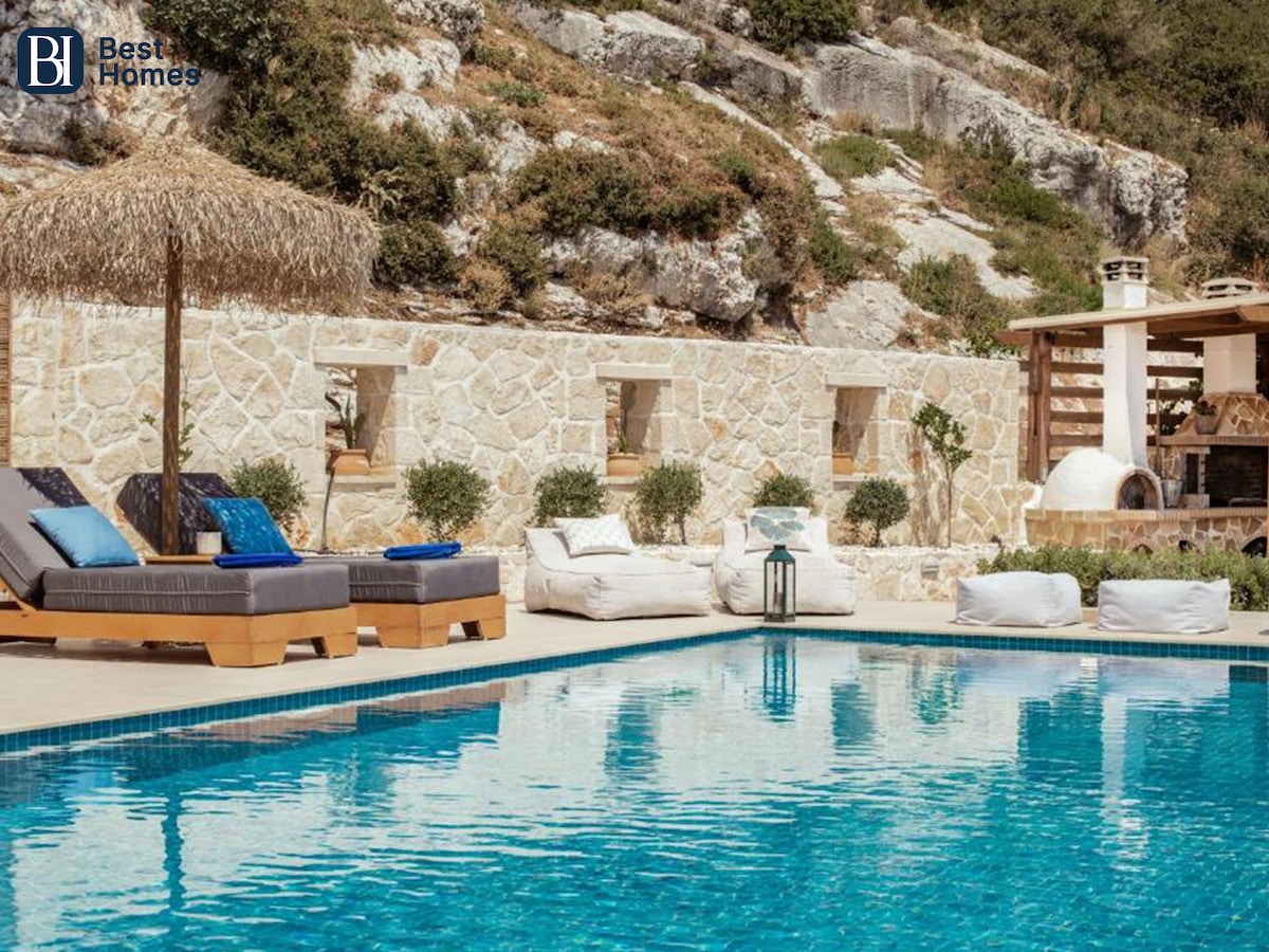 Zante Soleil : villa élégante en pierre avec piscine privée