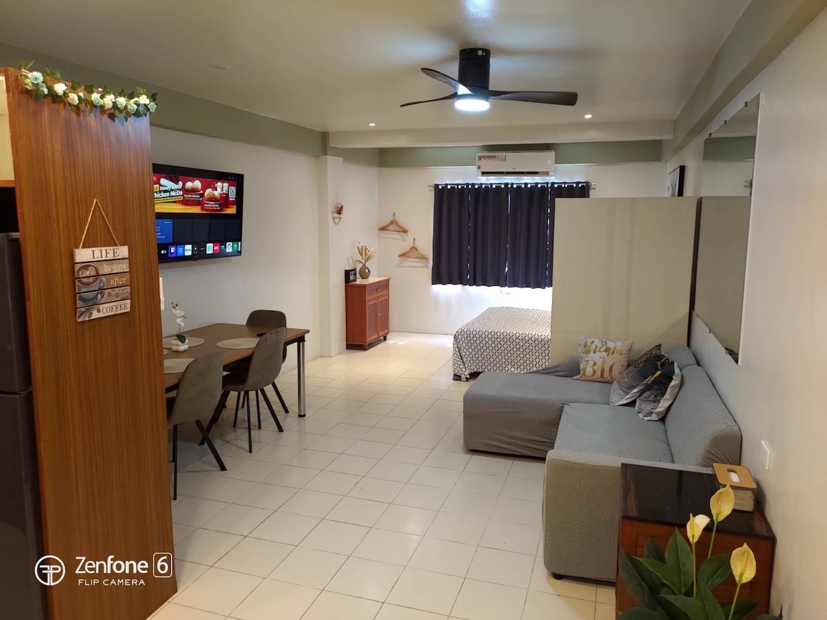 Studio Type d'unité à Topaz Building, Crown Peak Area, Upper Cubi, Subic Bay Freeport Zone - Cuisine autorisée - Peut accueillir 8 adultes - Parking ouvert gratuit - 2 lits superposés - taille double complète - 1 divan-lit - 1 matelas simple - Cuisinière électrique - Refrigerator - Cuisinière à riz - Four à micro-ondes - Bouilloire électrique - Wifi: Netflix: télévision HD 43". - Assiettes et ustensiles - Lit bébé sur demande - Serviettes - Shampoings et gels douche.