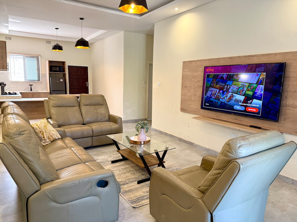 Ce logement élégant est parfait pour les voyages en famille ou en groupe. Dans un rayon de 3,5 km de Eastpark, Arcades et Mandahill Malls, Mulungushi Int. Conf. Centre et le nouveau CBD, ce qui le rend idéal pour une escapade d'un week-end ou un voyage d'affaires ; à seulement 25 minutes de l'aéroport. L'intérieur est un espace de vie ouvert spacieux et confortable avec la salle à manger et la cuisine entièrement équipée donnant sur la véranda et le jardin. Beaux espaces de jardin partagé bien entretenus.
