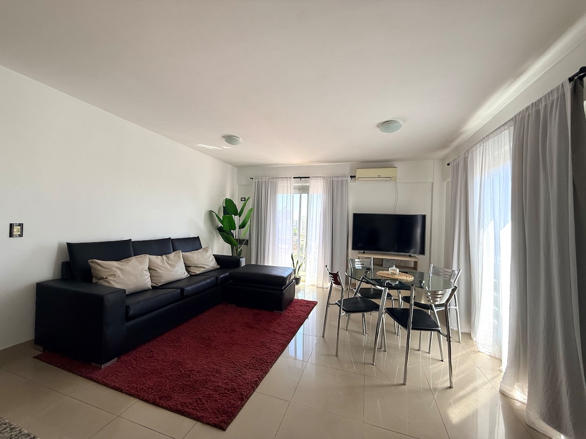 Appartement spacieux et lumineux avec deux chambres et un salon-salle à manger. Il est équipé de tout ce dont vous avez besoin pour un séjour agréable : cuisine, salle de bain complète, toilettes, wifi, jeu de serviettes, linge de maison et ustensiles de cuisine. Il dispose d'un balcon avec vue panoramique. Il dispose également d'un garage dans le bâtiment pour un supplément de 10 USD par jour. Il est situé au cœur de la ville de Campana, en face du supermarché Carrefour de l'Avenida Mitre.
