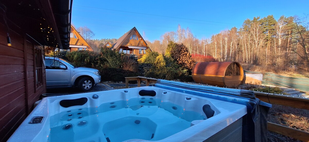~ Jacuzzi jest wliczone w cenę pobytu ~ Pod Srebrzystym Świerkiem to całoroczny domek z jacuzzi przystosowany do komfortowego przyjęcia 2-6 osób. Domek jest w pełni wyposażony. Do dyspozycji gości oddajemy kuchnię, sypialniane poddasze z dużym podwónym oraz dwoma pojedyńczymi łóżkami, łazienkę, a także pokój dzienny z rozkładaną dużą wygodną sofą, któremu klimat nadaje kamienny kominek. Z kuchni i pokoju można podziwiać bajeczne górskie widoki.