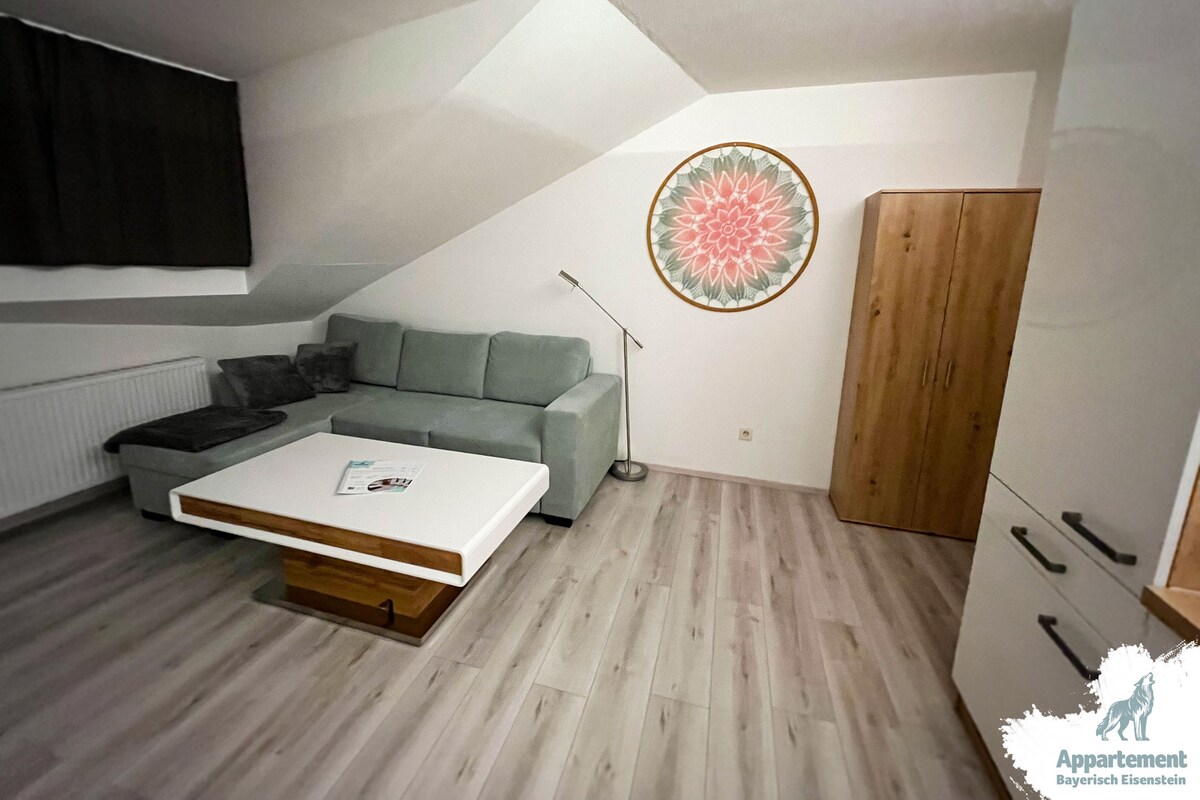 Bienvenue dans l'appartement 004 de la Zwieseler Waldhaus. Votre havre de paix au cœur de la forêt bavaroise. ⛷️ Le parc national commence juste à côté de la maison. Après une longue randonnée, vous pouvez terminer la journée dans le 🏊♂️ jacuzzi et le sauna. Idéal pour les couples, les randonneurs, les travailleurs à distance et les personnes en quête de tranquillité. Nous offrons gratuitement : 🛜 Wi-Fi 📺TV 🍲 Cuisine entièrement équipée 🏊 Sauna et bain à remous 🅿️ Parking 🔑 Enregistrement automatique