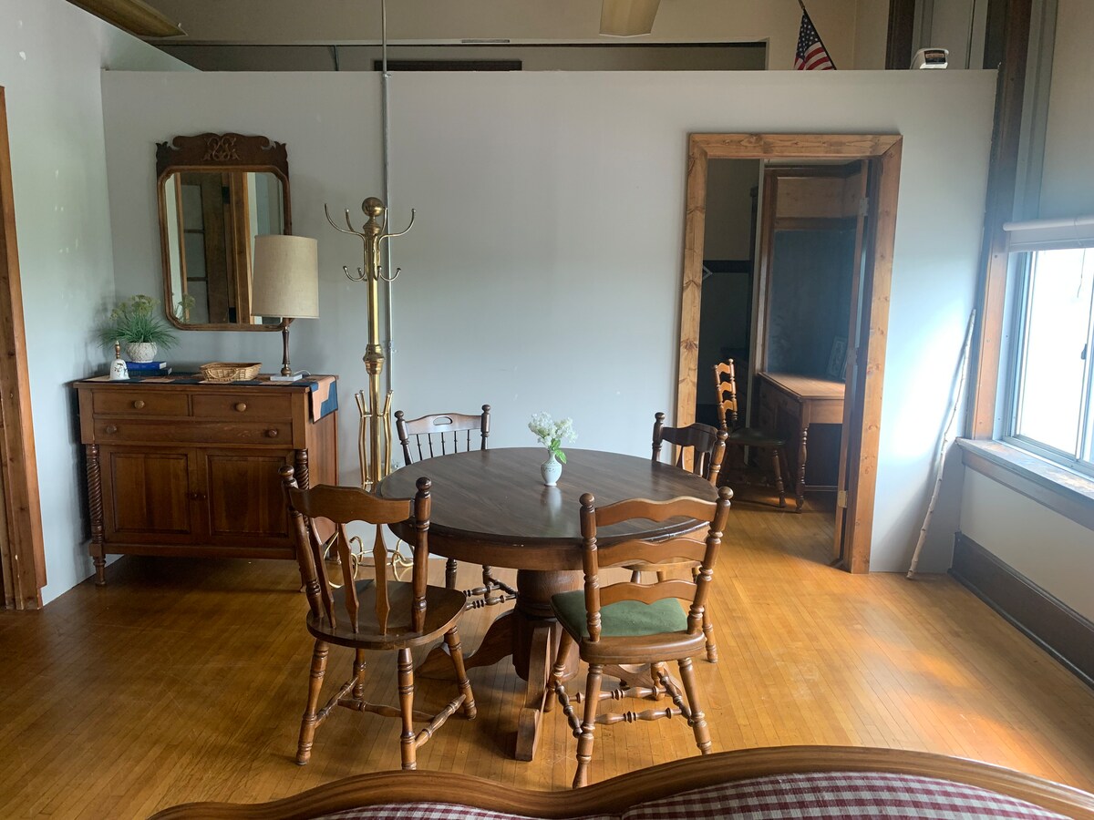 Hangar d'avion converti en une maison unique avec deux grandes chambres, 1 salle de bain et un garage attenant chauffé à 1 place. Le « Hangar » dispose de planchers chauffants et d'un foyer au gaz pour des escapades hivernales confortables. Situé sur Elbow Lake, « The Hangar » est situé à quelques minutes de Virgina et d'Eveleth/Gilbert. (Remarque : le hangar n'est pas au bord du lac, mais un accès au lac est disponible.) - À 36 mn de Giants Ridge - À 25 minutes de Hibbing - À 10 minutes de l'autoroute 53. - À 30 mn du Sax-Zim Bog - À 20 minutes du Red Head Mtn Bike Park
