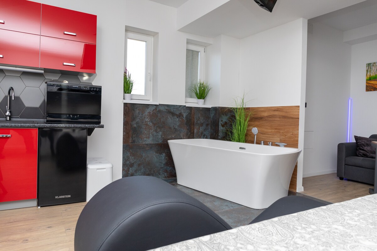 Petit studio récemment construit (19 m2) dans une rue calme et paisible qui répondra pleinement à toutes vos attentes. Parking privé à l'intérieur dans la cour, chauffage central et climatiseur, Internet Wi-Fi haut débit, 2* par équipement et services selon les normes de l'UE. Depuis la place principale de la ville, il y a 3 km. À 200 m de l'appartement se trouve le grand supermarché Kaufland, DM et le marché. Un lit 140x200. Arrivée/départ vous-même. Pour 1 ou 2 adultes ou 1 adulte et un enfant (12 ans et plus). La taxe de séjour est incluse dans le prix.