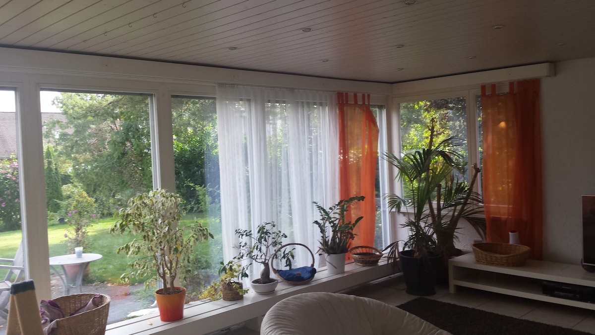 Villa/jardin pour 6-14 hôtes à Zurich-Oerlikon avec que 150 au bus - 15 min au centre/aeroport/Hallenstadion. Ideál pour grouoes/familles à bon prix/offre - 1,5 salle de bains/toilette. 2nd: 3 chambres pour 4/4/3+ bain mod./douche. 1er: Salon pour 2-4 hôtes+toilette. Cuisine, salon, jardin d'hiver, jardin avec pavillon - un paradis! Proprietaire vive en-haut - mais on partage QUE l'entrée/escaliers! Les mascottes sont bienvenus! Petits rencontres sont ok, mais avec SILENCE dehors dès les 10PM.